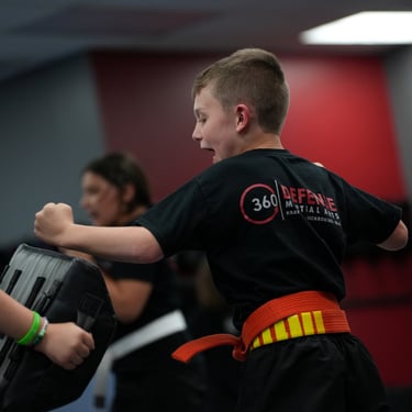 At 360 Defense, our kids’ program combines self-defense, fitness, and life skills in a fun, structured environment. Your child will learn practical techniques from Krav Maga and Brazilian Jiu-Jitsu—skills they can actually use to stay safe and stand up for themselves, both physically and verbally.